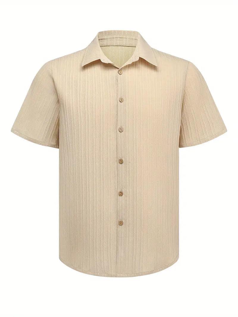 Męska koszula z krótkim rękawem przeznaczona do codziennego noszenia w cieplejsze dni. Otwarty kołnierz z klapami oraz zapięcie na guziki nadają całości swobodny, lecz uporządkowany charakter. Subtelna struktura tkaniny wprowadza urozmaicenie i sprawdza się podczas codziennych aktywności.